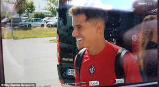 ฟิลิปเป้ คูตินโญ่เพลย์เมคเกอร์ขี้แยของบาร์เซโลน่ายิ้มฟันขาวระหว่างเดินทางถึงนครมิวนิคเพื่อเข้ารับการตรวจร่างกายก่อนย้ายไปบาเยิร์น มิวนิคแบบยืมตัว